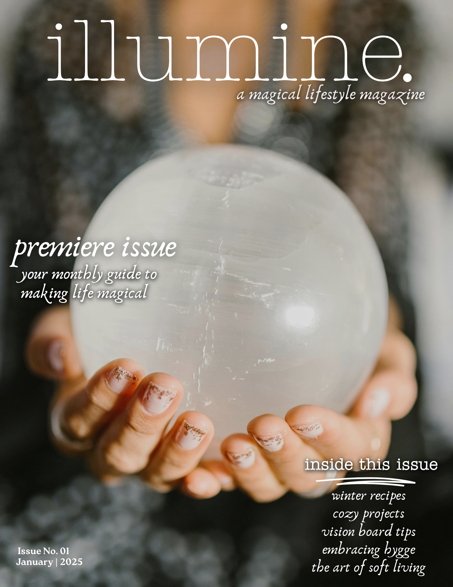 The January digital issue of Illumine Magazine is your perfect companion for embracing the magic of new beginnings. Inside, you'll find cozy DIYs like handmade bookmarks, seasonal journaling prompts to set your intentions, enchanting book recommendations, and winter wellness tips to align with nature's rhythm. Explore rituals for rest and rejuvenation, crystals to enhance your winter energy, and creative ways to infuse every day with magic. This issue is your guide to stepping into 2025 with clarity, purpose, and a touch of enchantment.