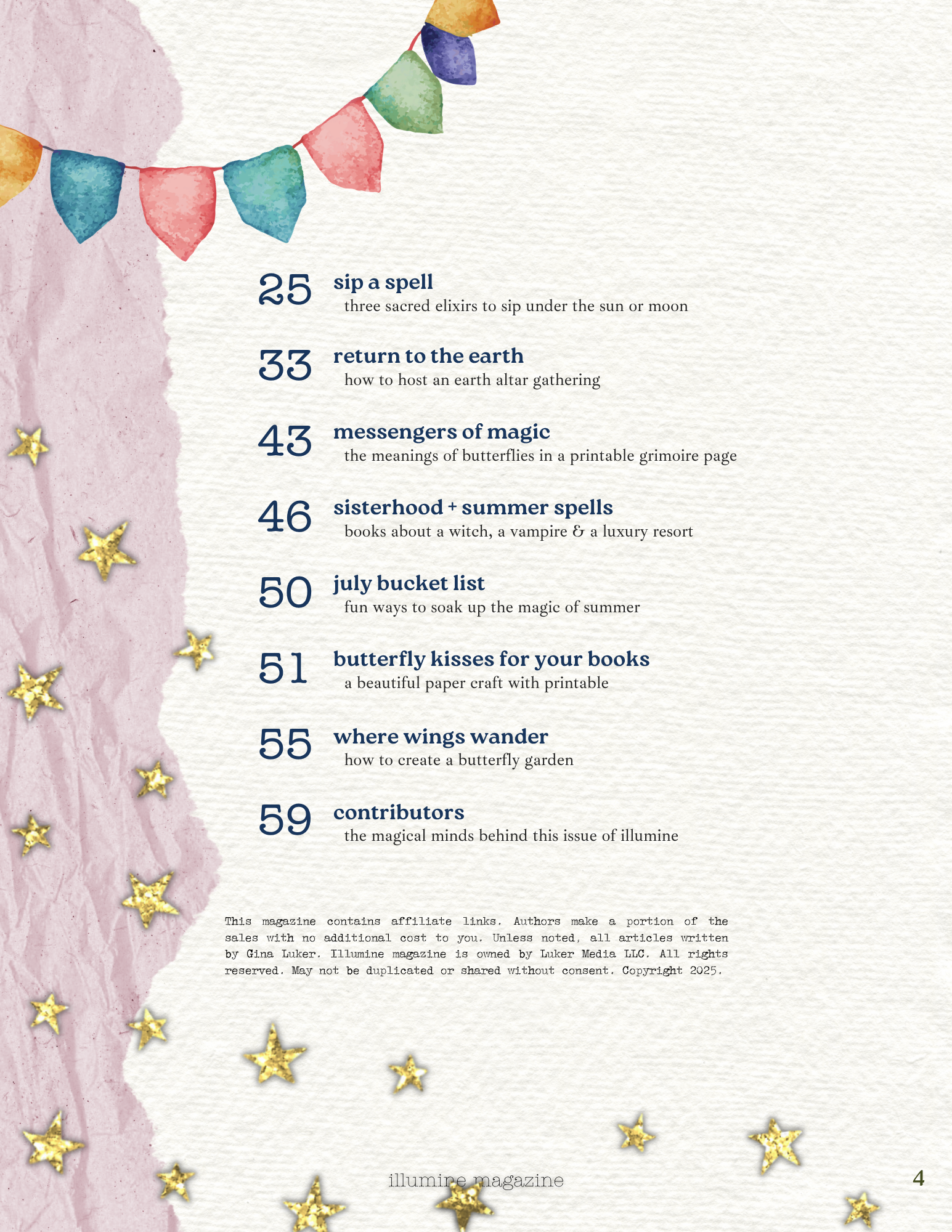 Illumine Magazine is a beautifully crafted digital lifestyle magazine that blends magic, mindfulness, and cozy living. Each issue is filled with inspiring DIY projects, seasonal rituals, journaling prompts, book recommendations, and wellness tips to help you infuse everyday life with intention and enchantment. Whether you're seeking moments of calm, creative inspiration, or a deeper connection to yourself and the world around you, Illumine is your guide to making life magical. Written and published by Gina Luker, Luker Media LLC