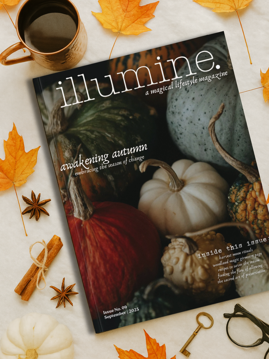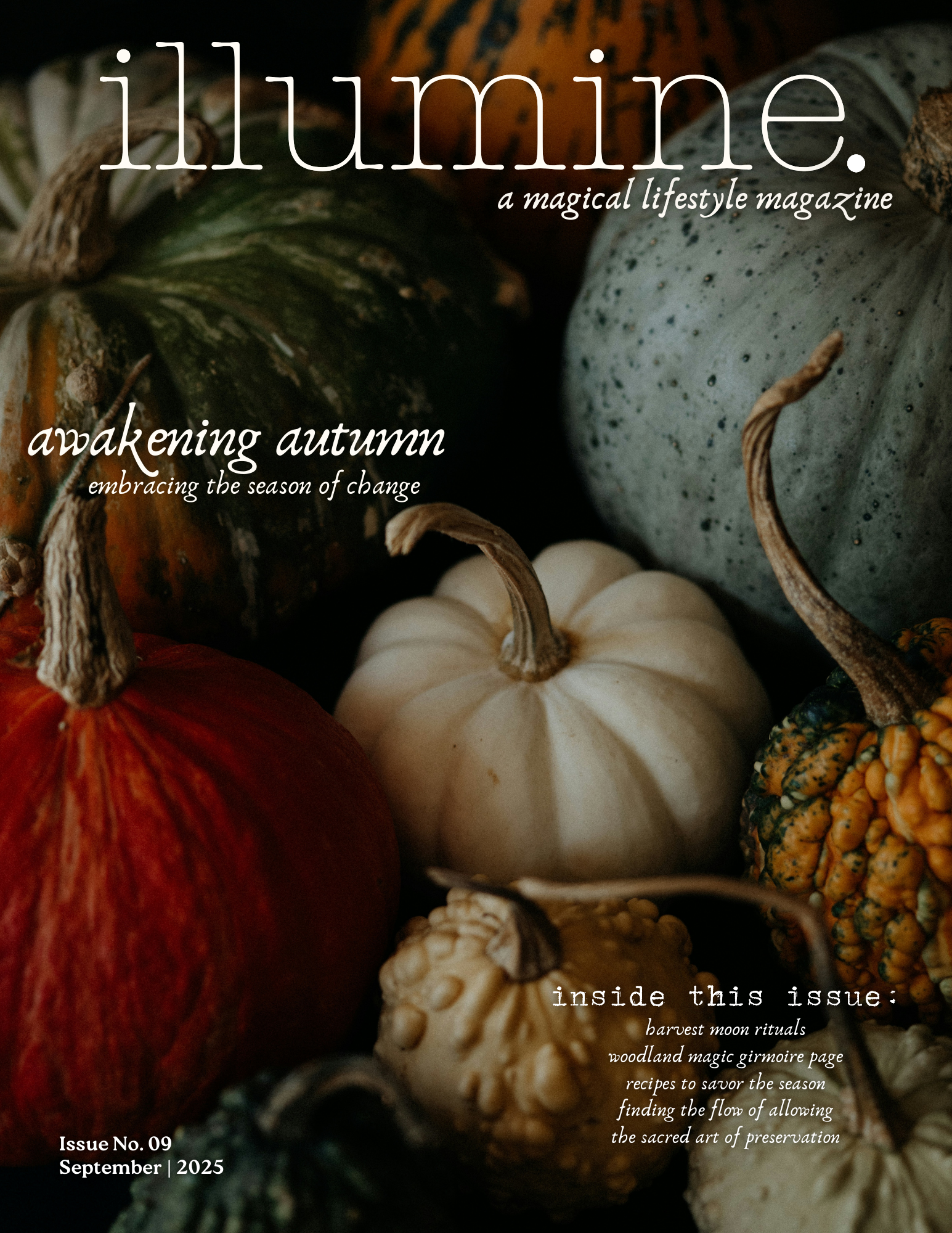 The September issue of Illumine is an invitation to honor the harvest, gather gratitude, and root yourself in the golden shift of the season. Anchored in cozy rituals and the quiet magic of autumn, these pages are a gentle reminder that change can be beautiful—that you can ground deeper while dreaming forward.