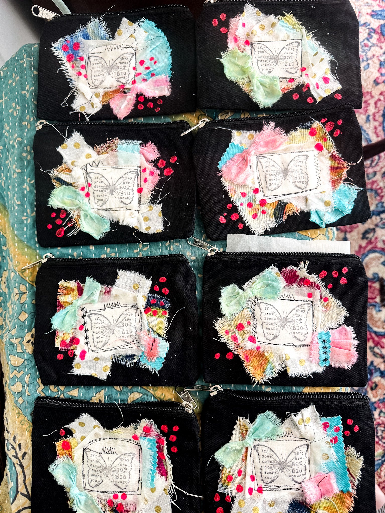 Zipper pouch hand embellished and painted